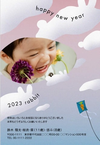 口コミにも書かれてありますが、ごちゃごちゃとしたデザインではなくシンプル&おしゃれな年賀状が良いと思われる方は年賀家族2023をおすすめします。